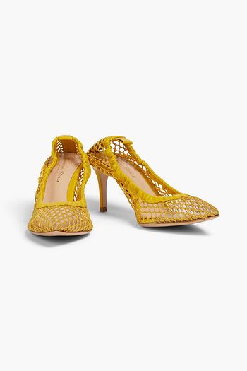 حذاء أليسيا بكعب عالٍ من الشبك بحواف من الجلد