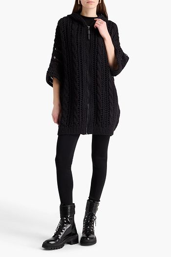 كارديغان من مزيج نسيج الجوت بحبكة كروشيه مزين بأقراص براقة