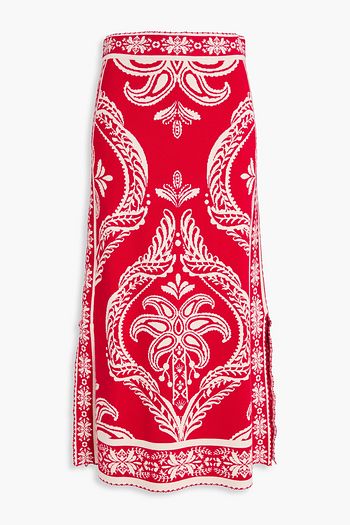 Embellished stretch-velour midi skirt