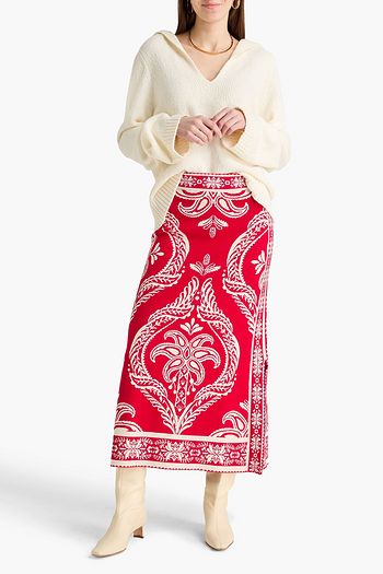 Belted printed cotton and silk-blend voile midi skirt