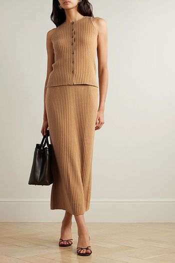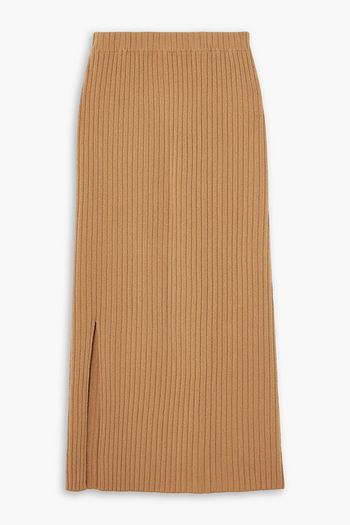 Steer cutout ribbed wool-blend midi skirt