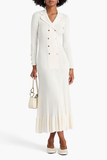 فستان بأسلوب القميص متوسط الطول من الصوف بقِطع محاكة بجانب بعضها البعض من الكريب