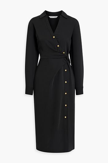 فستان متوسط الطول على شكل قميص من الكريب مزين بسلسلة وبحزام