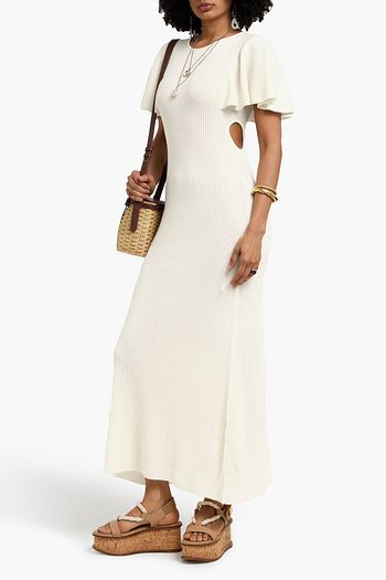 فستان متوسط الطول بحبكة من نسيج مطاط ومزين بكسرات وفتحات