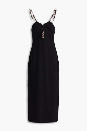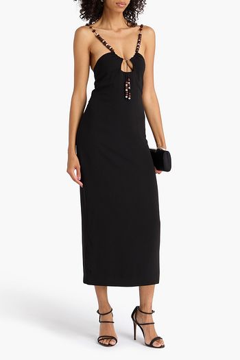 فستان متوسط الطول "جوان" بياقة هالتر الدائرية من بحياكة بانديج مزين بالكريستال