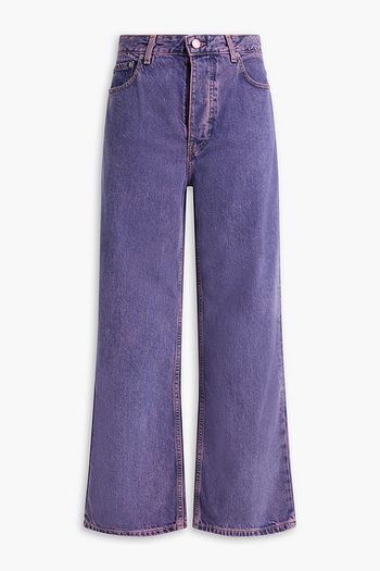 جينز بأرجل واسعة وخصر مرتفع بتأثير معتق