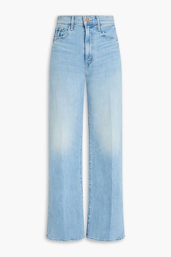 فستان متوسط الطول مصنوع من الدنيم مع قطع محاكة بجانب بعضها البعض من التويل