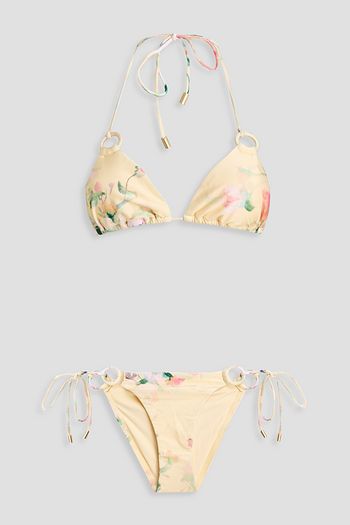 بيكيني بقصّة مثلّثة الشكل مزيّن بحلقات وبطبعة الأزهار