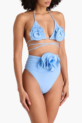 One-shoulder floral-appliquéd bikini top