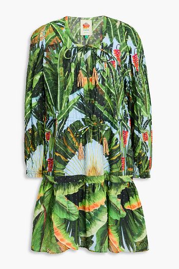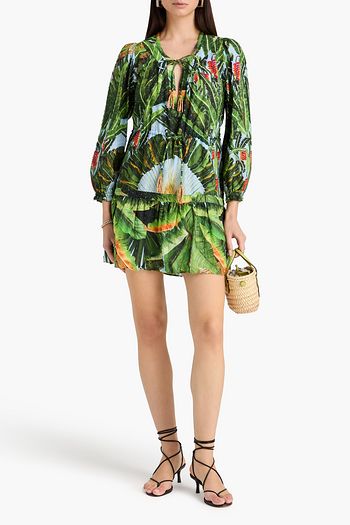 فستان قصير برباط من قطن فوال مزين بطبعات