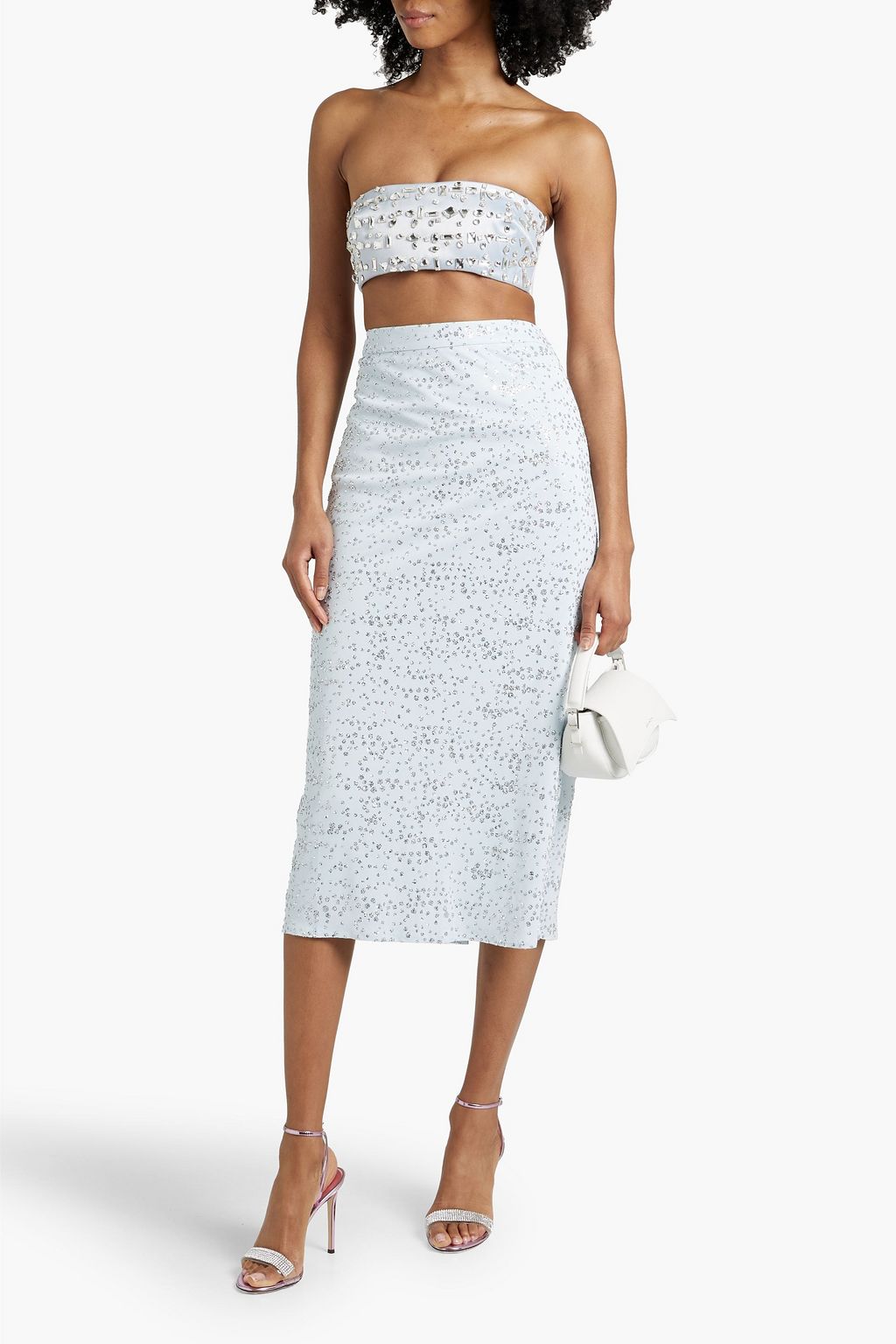 16ARLINGTON بلوزة ’’بليز’’ بدون حمالات مصنوعة من ساتان تويل ومزينة بالكريستال