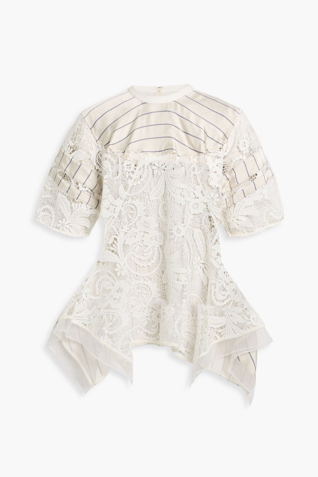 3.1 PHILLIP LIM بلوزة من الدانتيل المفرّغ والساتان بتصميم مخطط