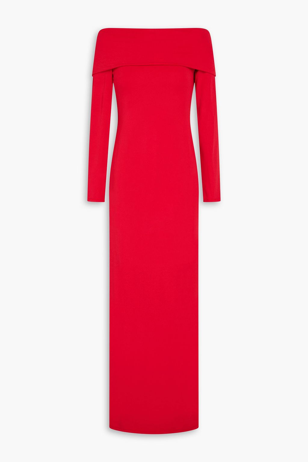 ALICE + OLIVIA فستان كوريتا طويل من الجيرسي المطاط بتصميم مكشوف الكتفين