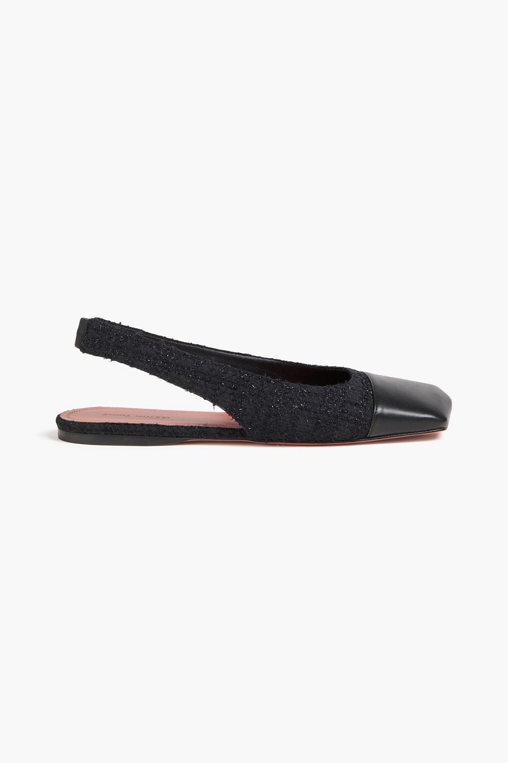 AMINA MUADDI حذاء باليرينا مسطح "أنا" بحزام خلفي من الجلد والتويد