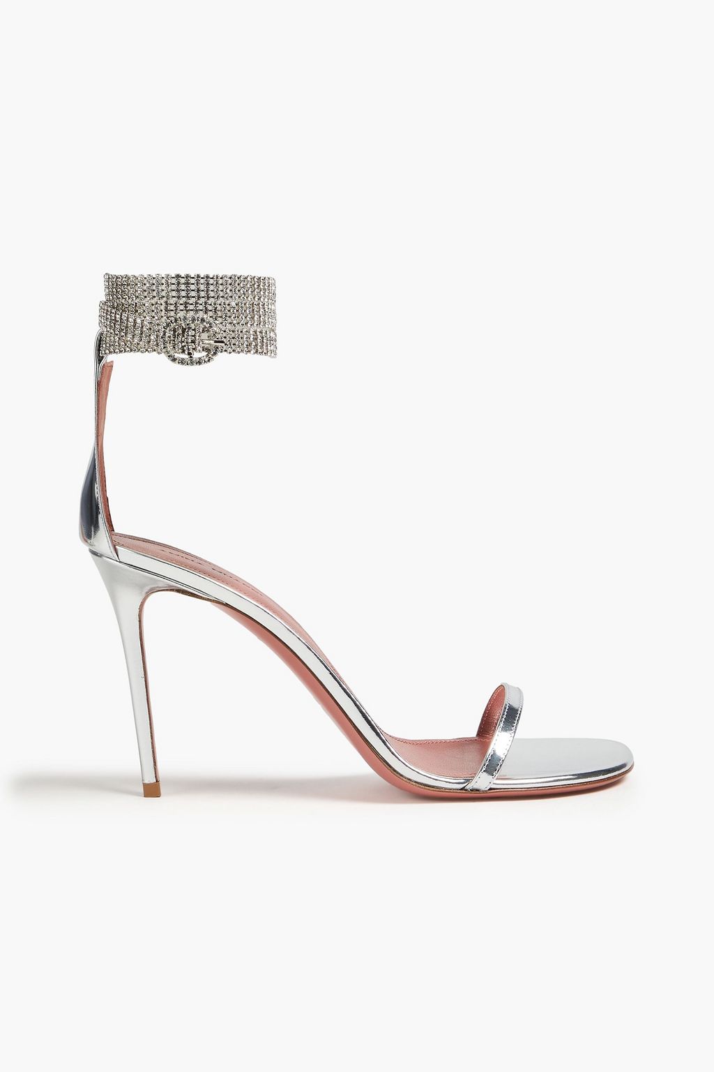 AMINA MUADDI صندل جورجيا من الجلد بلون ميتاليك مزين بالكريستال
