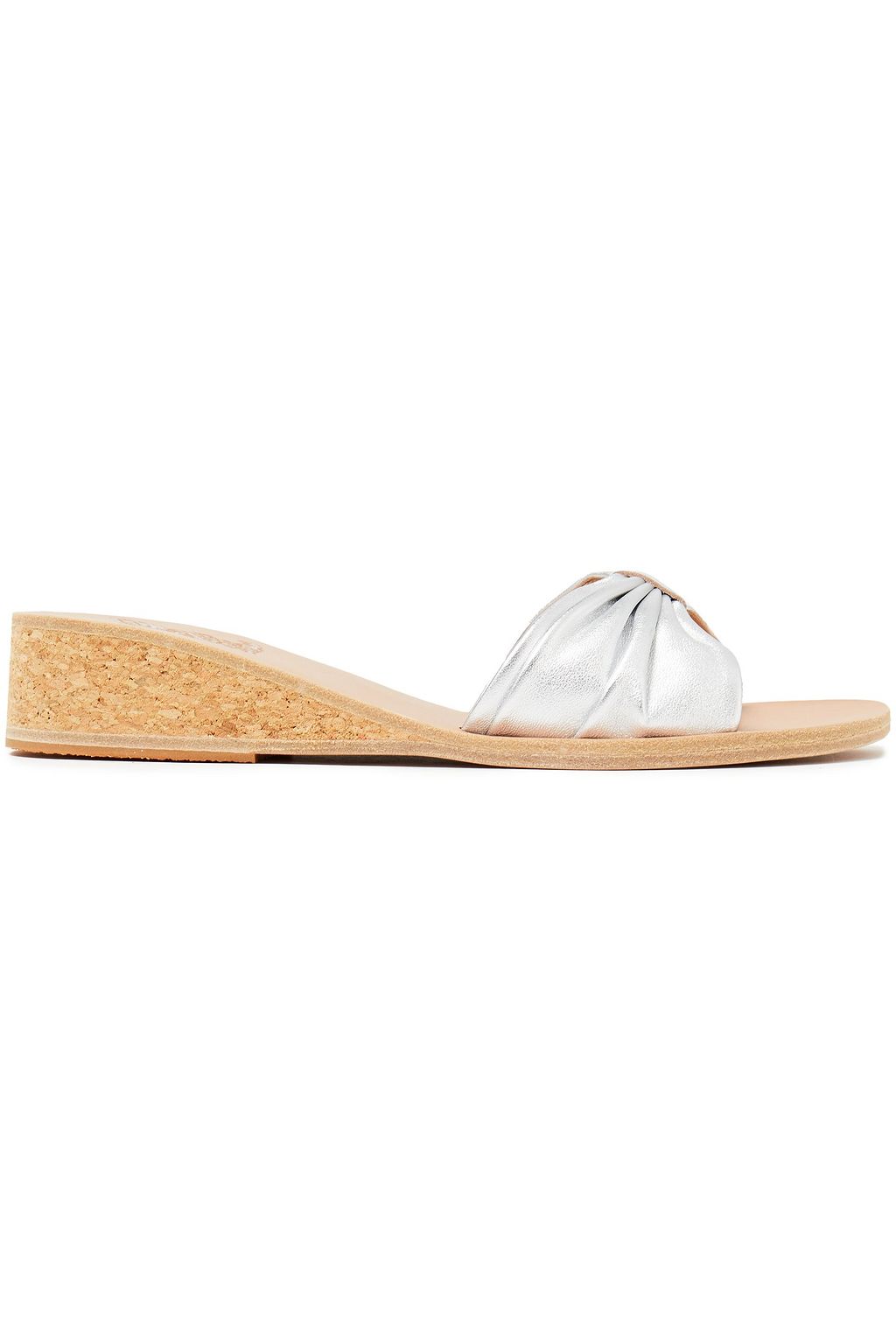 ANCIENT GREEK SANDALS صندل ويدج "ميني" من الجلد بلون ميتاليك وبتصميم ملموم