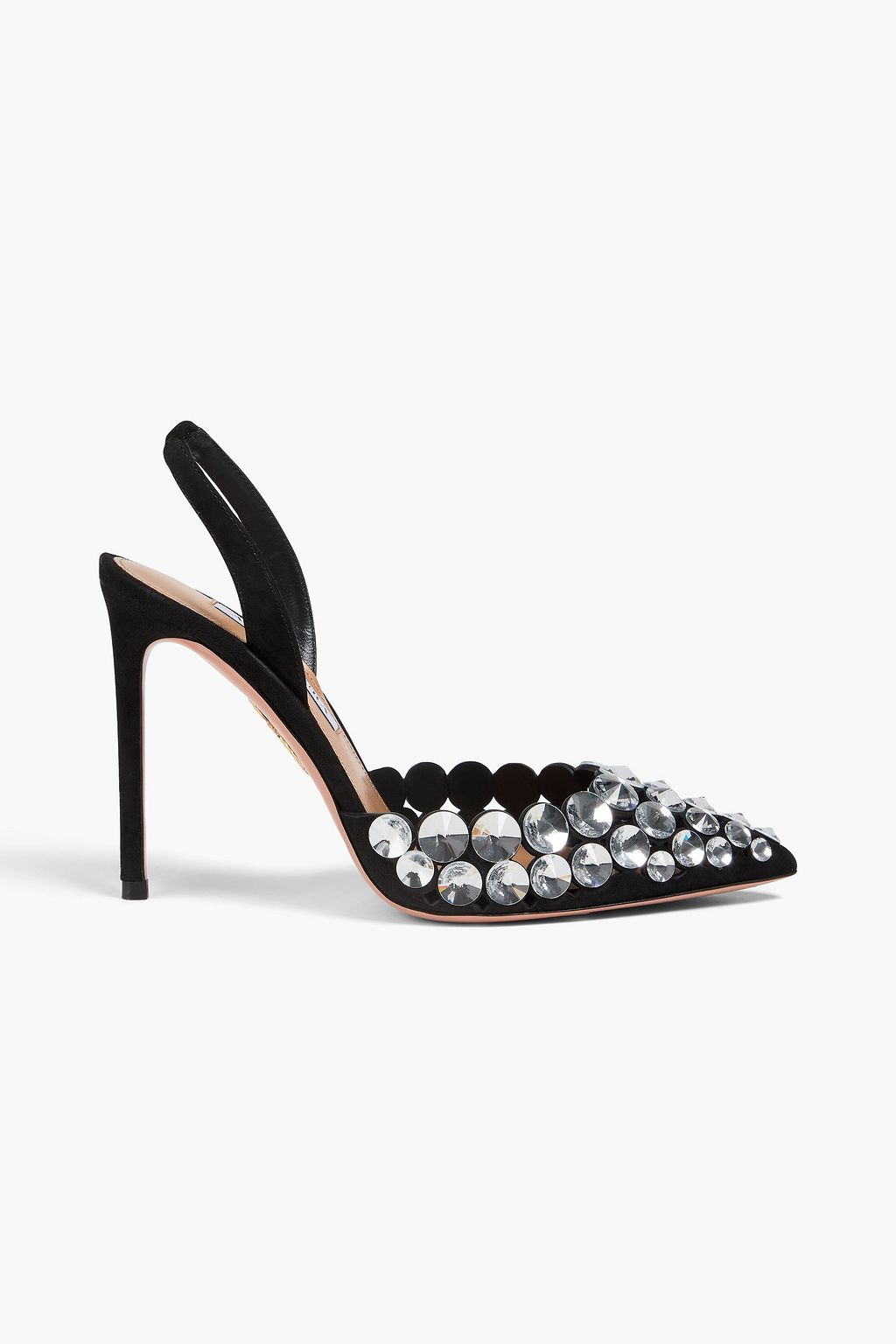 AQUAZZURA Crystal-embellished suede slingback pumps