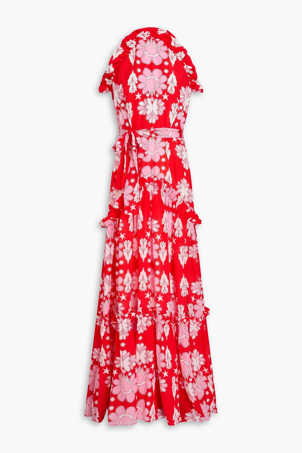 BORGO DE NOR فستان طويل "تاتيانا" بطبقات متدرجة من الكريب مزين بطبعة الأزهار