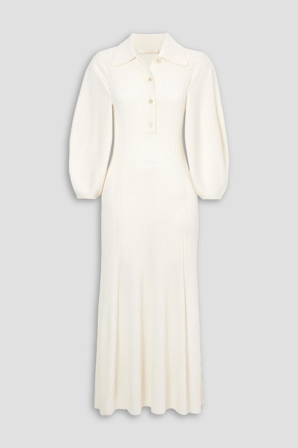 تتميز مجموعات Chloe دائمًا بالملابس المحبوكة الفاخرة، وهذا الفستان الراقي باللون العاجي واحدًا من هذه المجموعات. منسوج من الصوف المضلّع القطيفة، وتتناسب ياقته الأنيقة وطوله المتوسط المعتدل مع الأكمام المنتفخة قليلاً والحاشية المخدّدة ببراعة. يمكن ارتداء هذه القطعة البسيطة مع الأحذية متناغمة الألوان للظهور بإطلالة أنيقة تتميز بلون واحد.