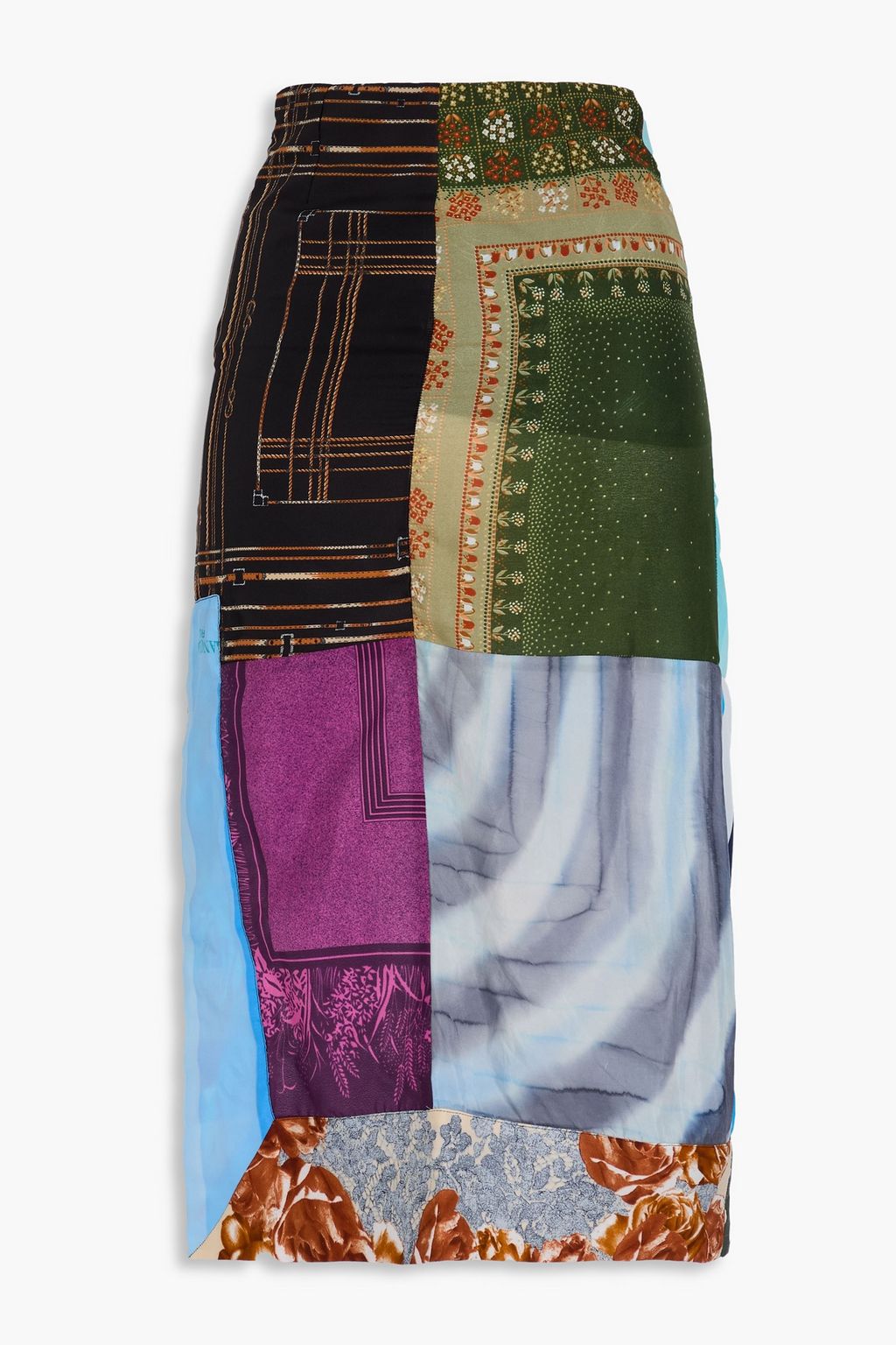 CONNER IVES تنورة طويلة من مزيج الحرير بطبعات