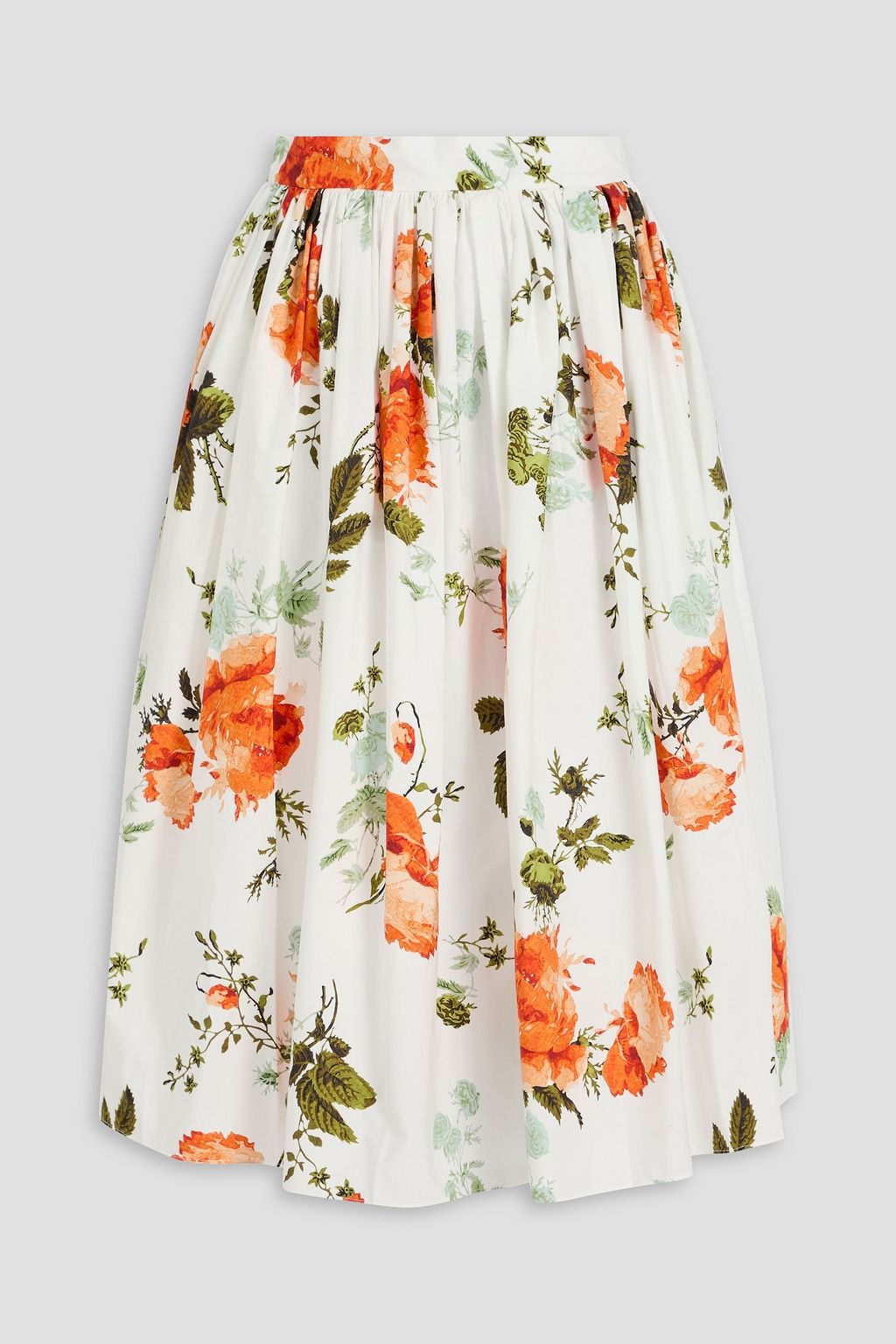 ERDEM Gathered floral-print cotton-poplin midi skirt