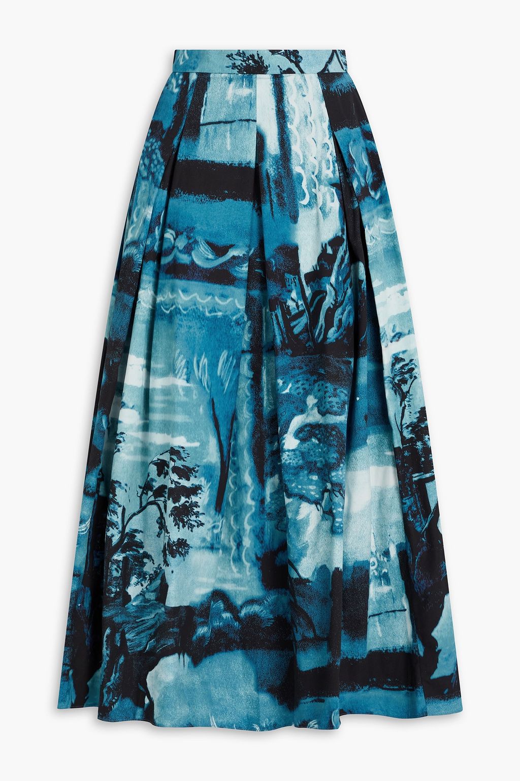 ERDEM Pleated floral-print cotton-poplin midi skirt