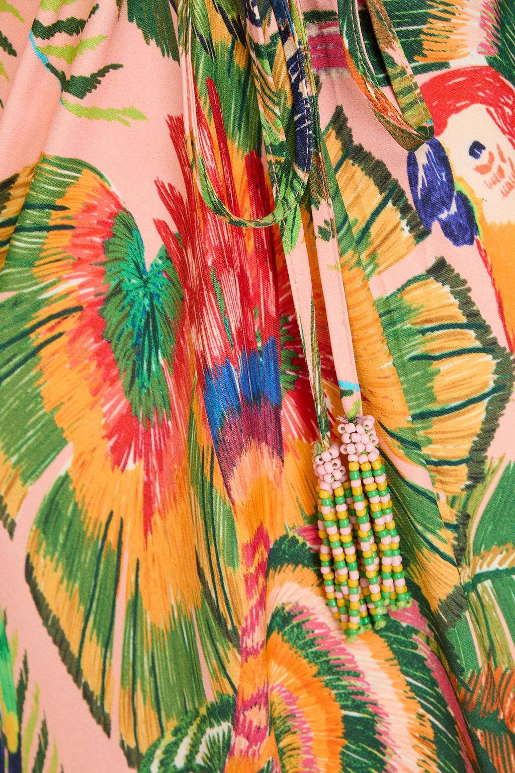 FARM RIO فستان متوسط الطول من الساتان بفتحات وبطبعات مزين بالخرز