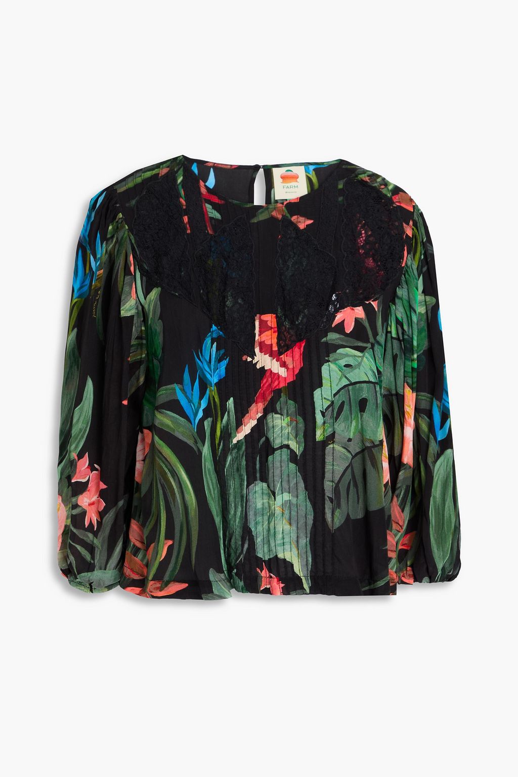 FARM RIO بلوزة من الحرير الصيني بقِطع محاكة بجانب بعضها البعض من الدانتيل وبطبعات