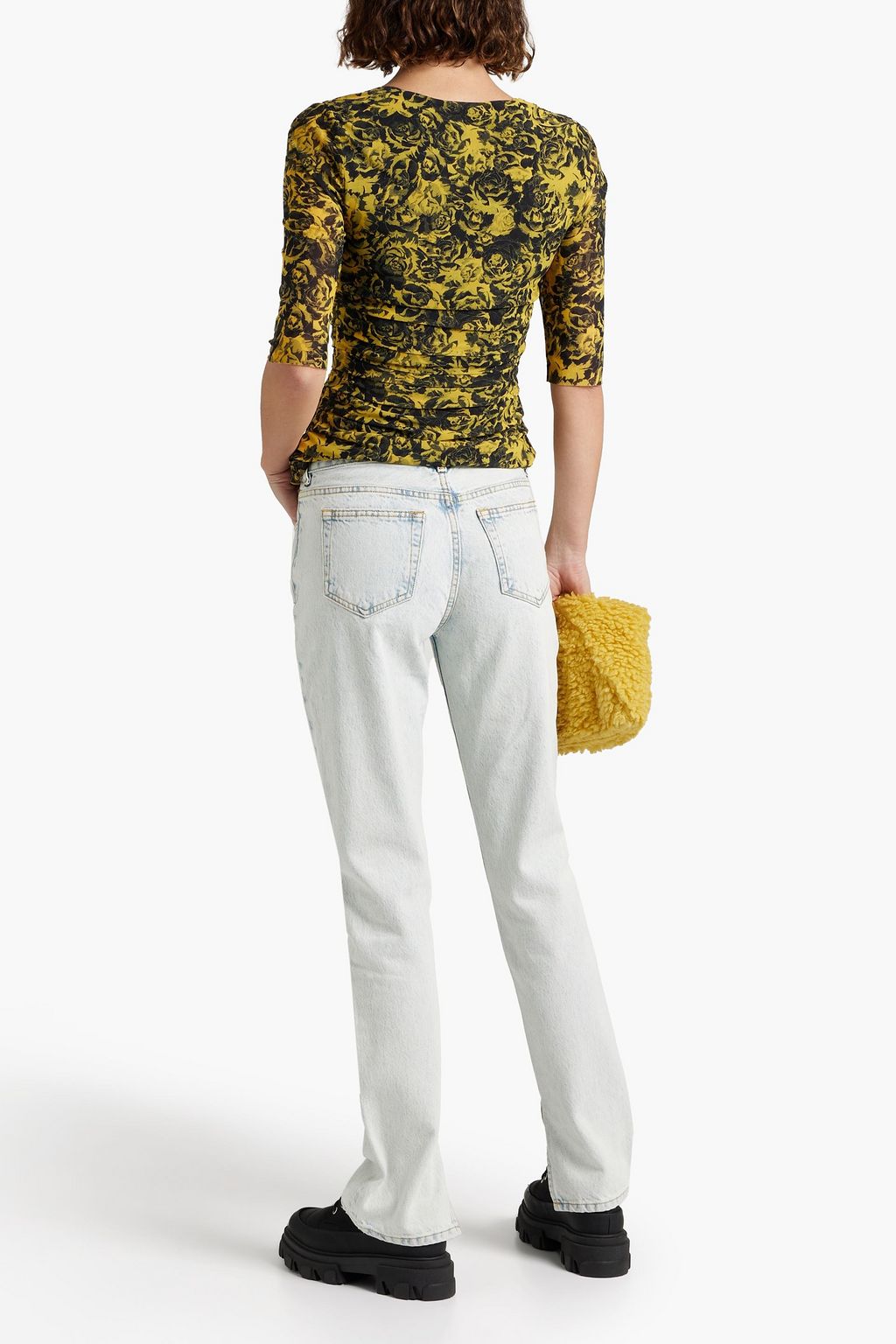 GANNI توب من الشبك بتصميم ملموم مزين بطبعات على شكل زهور