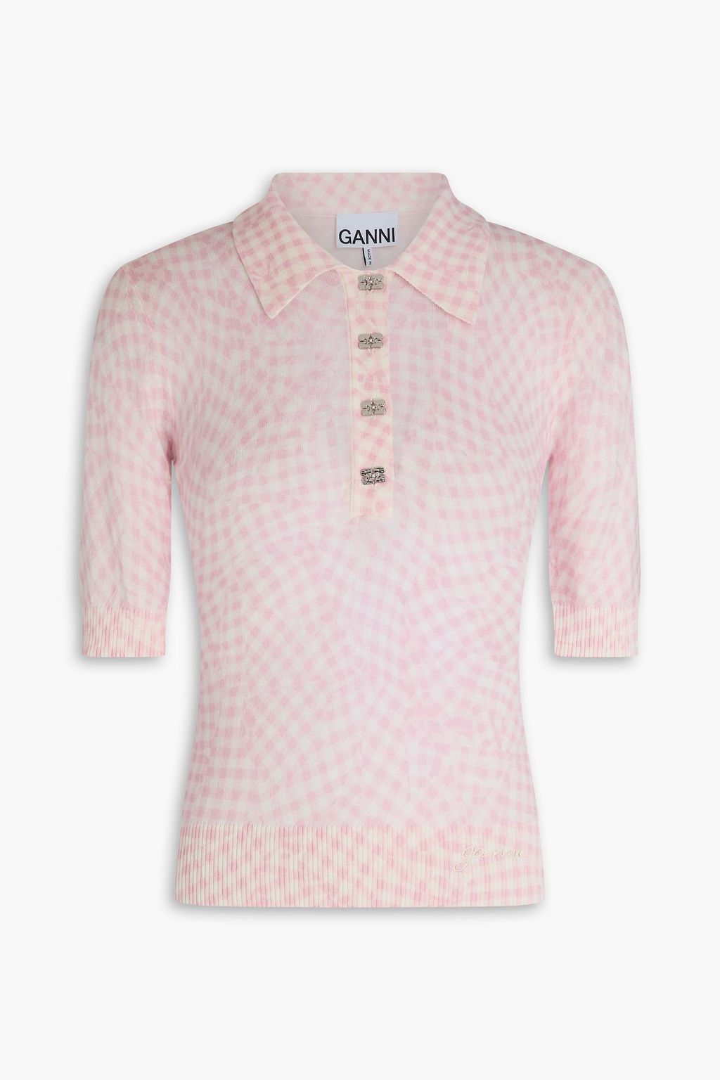 GANNI قميص من مزيج من القطن بطبعة مربعات
