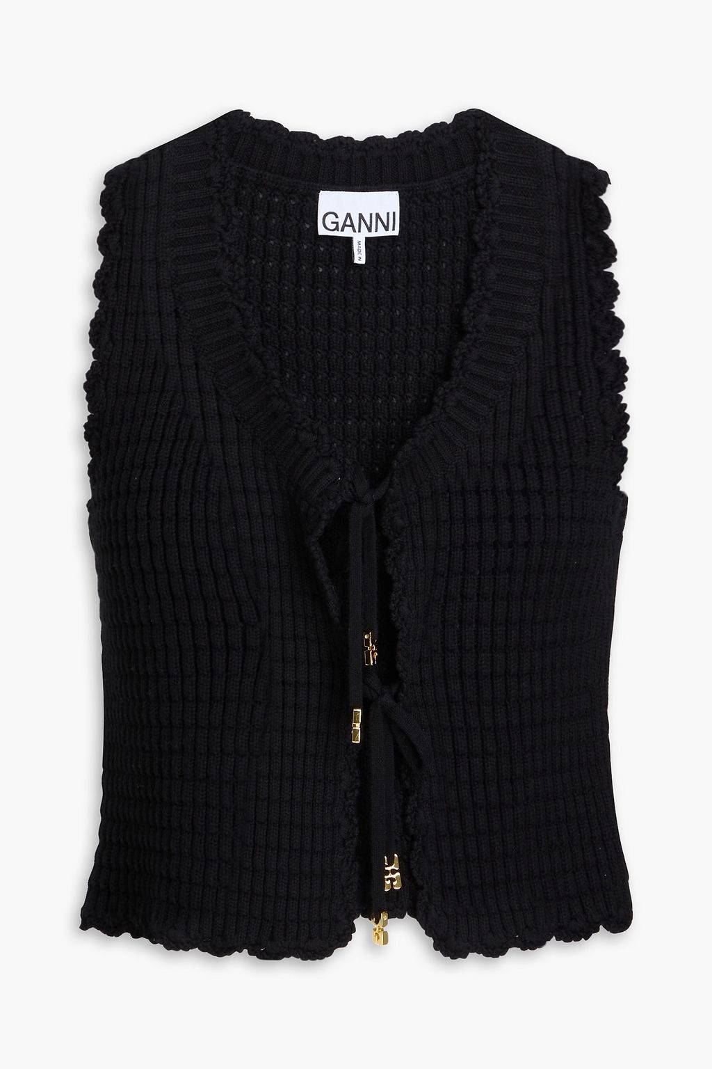 GANNI بلوزة من مزيج الكشمير والقطن بربطة من الأمام