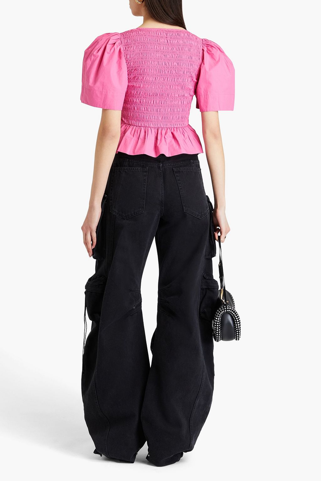 GANNI بلوزة بكشكشة عند الخصر من قطن بوبلين بتأثير مزموم