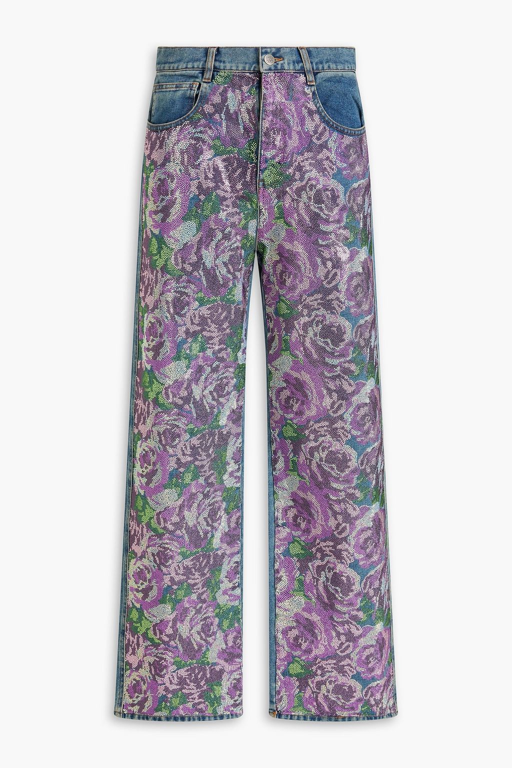 GIUSEPPE DI MORABITO بنطال جينز بأرجل واسعة وبخصر مرتفع مزين بالكريستال