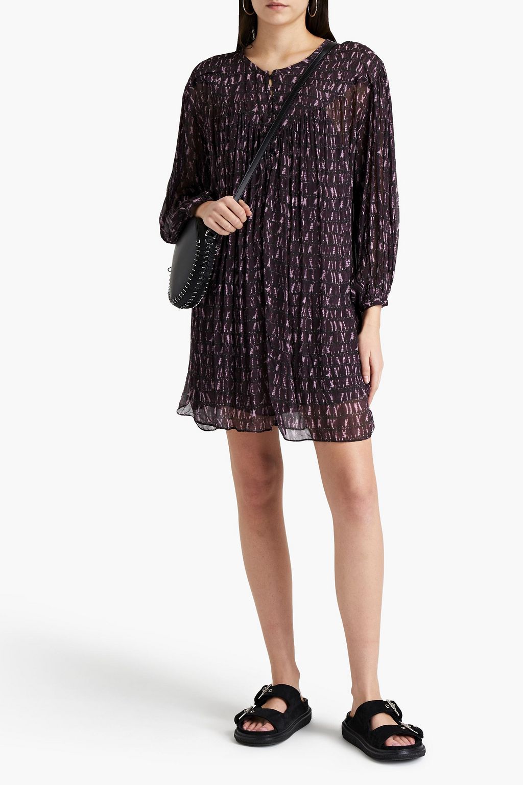 MARANT ÉTOILE فستان قصير من قماش الجورجيت المصبوغ بطريقة الربط وبتصميم ملموم