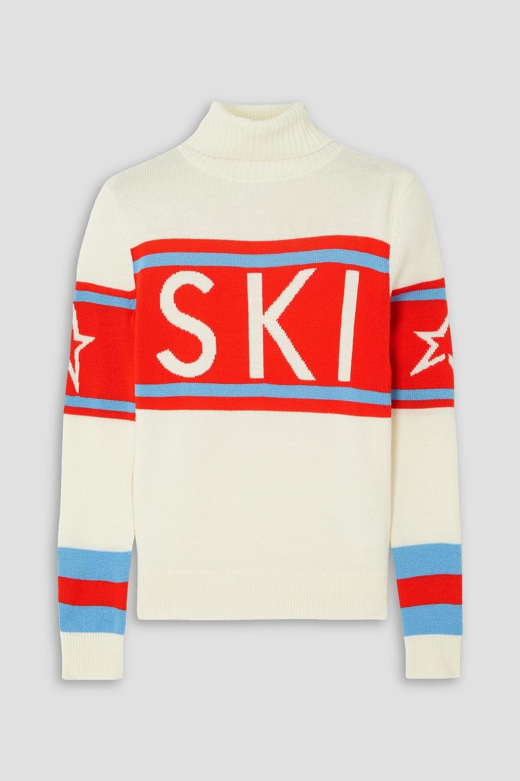 وإن ازدانت كنزة 'Schild' من Perfect Moment بعبارة 'SKI' على جهتها الأمامية، إلاَّ أنه يمكنك ارتداؤها بسهولة لإطلالات خارج المنحدرات أيضاً. صُنعت من صوف ميرينو العازل للحرارة، وهي تتحلّى بياقة طويلة مضلّعة مع حوافٍ متطابقة. تُبرز أساور الأكمام المخططة والطبعة الجريئة التي تزينها الطابع الريترو الذي تشتهر به العلامة.
