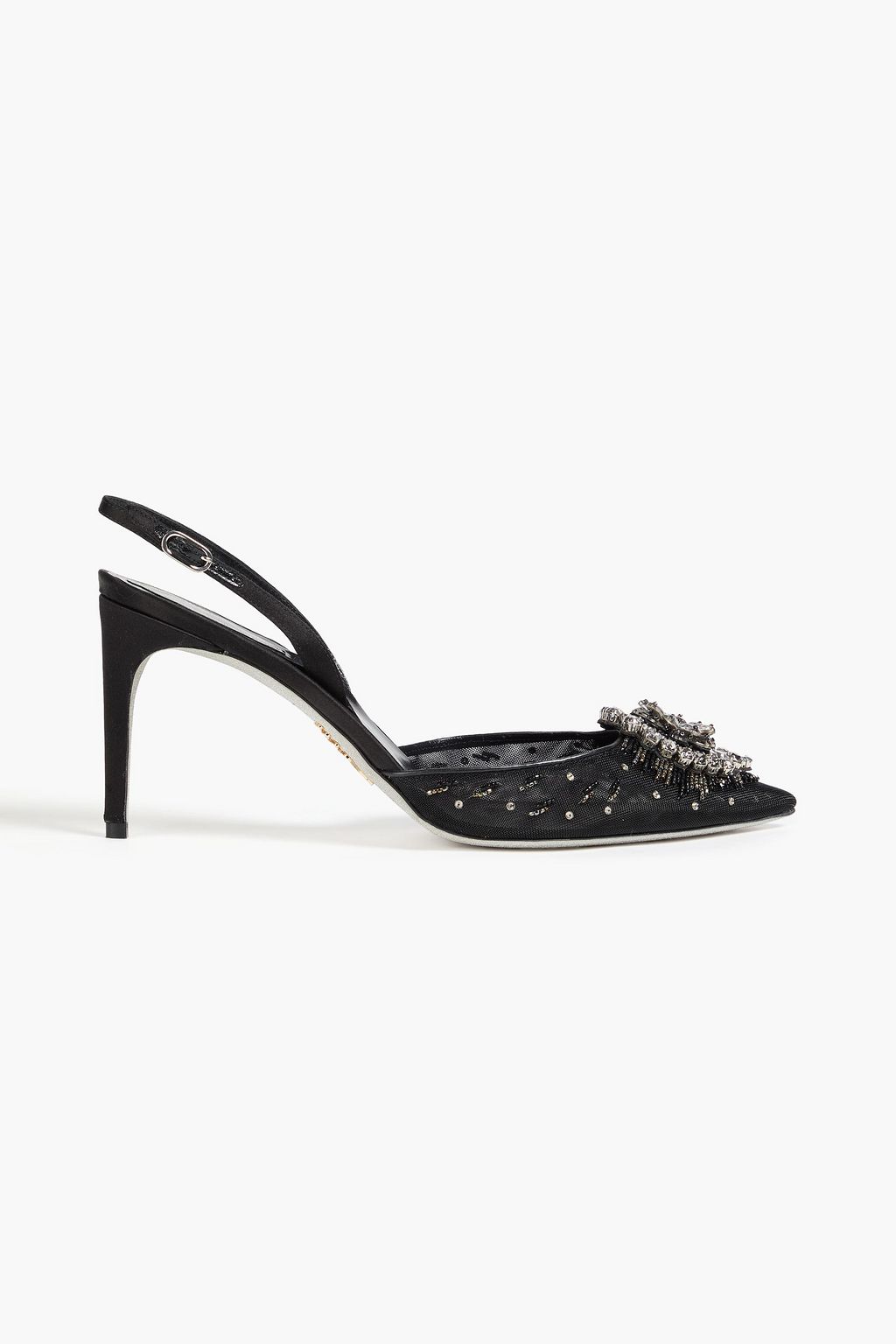 RENE' CAOVILLA Barbara embellished satin slingback pumps