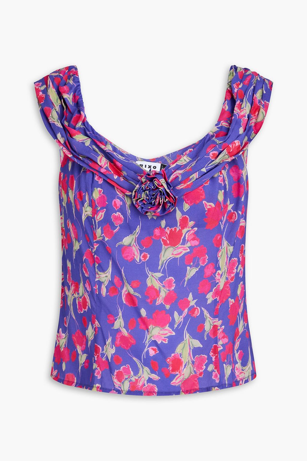 RIXO بلوزة قصيرة من التويل مزينة بطبعة الأزهار