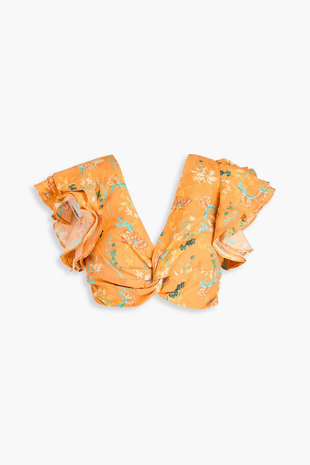 SOLID & STRIPED بلوزة ’’ذا ريناتا’’ قصيرة مصنوعة من مزيج الكتان ومزينة بطبعة الأزهار