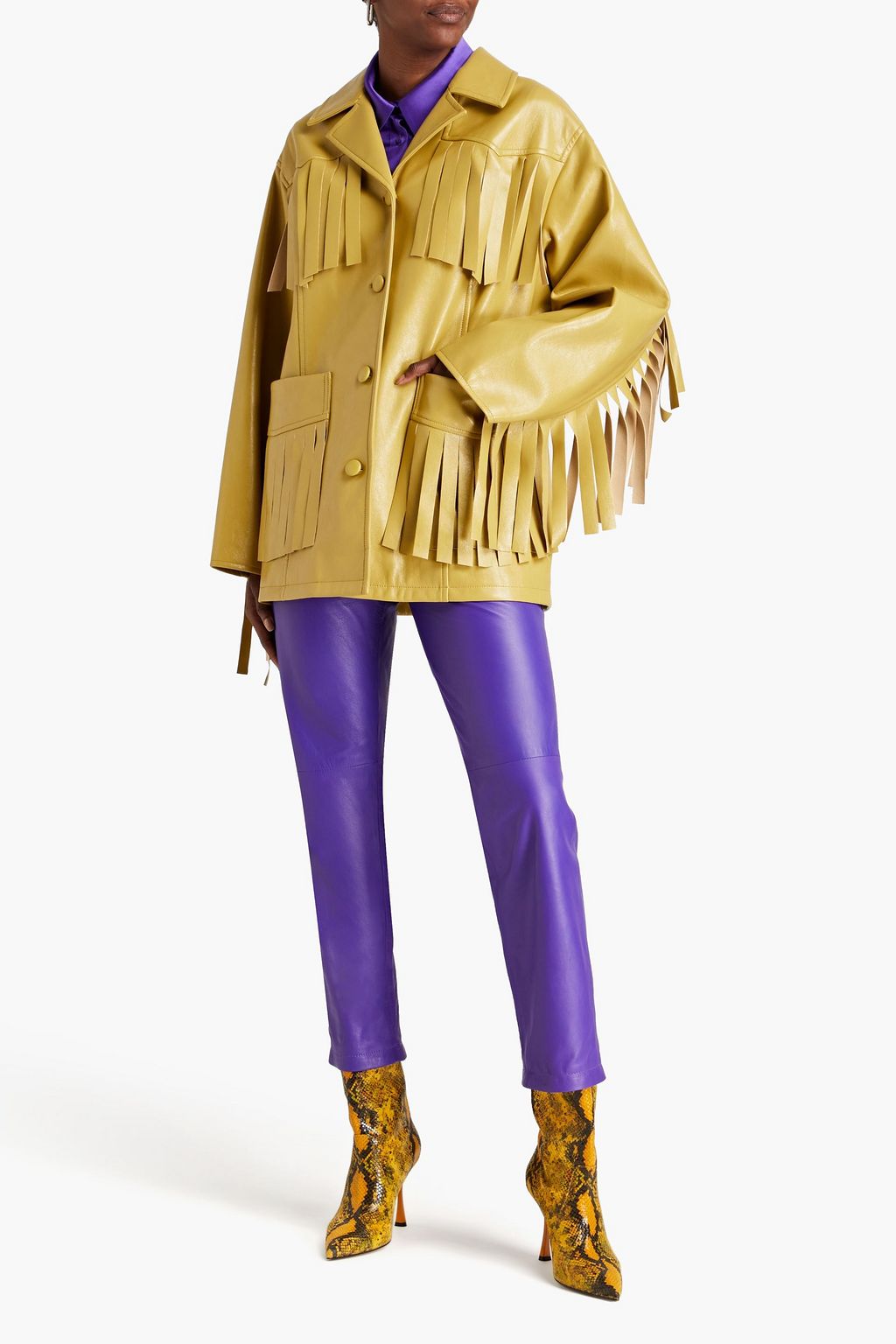 STAND STUDIO جاكيت «سيينا» من الجلد الصناعي بتصميم فضفاض مزين بأهداب