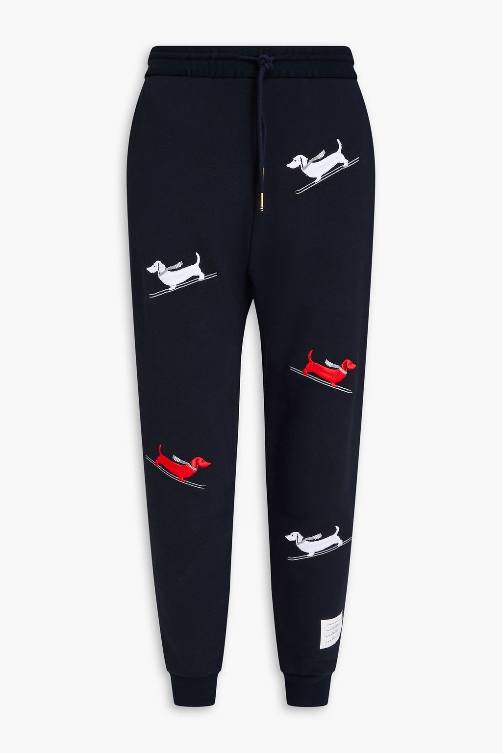 THOM BROWNE بنطال رياضي "هوليداي" من قطن تيري فرنسي مطاطي بتصميم مطرز