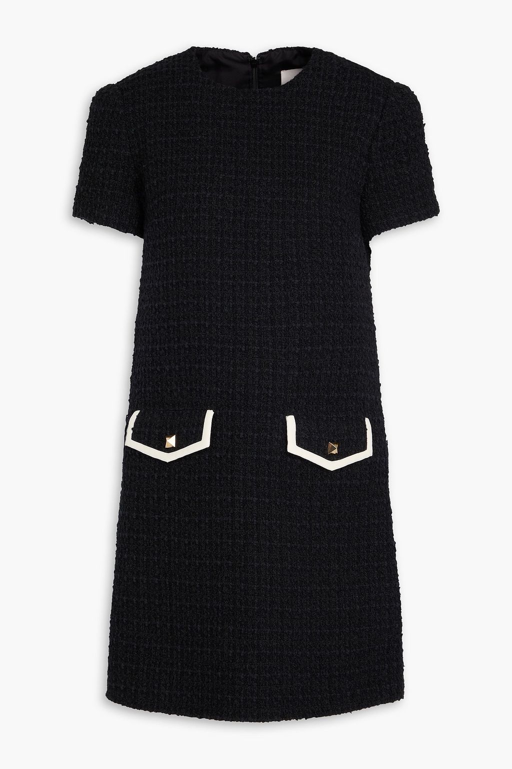 VALENTINO GARAVANI فستان قصير مخطط من التويد بحبكة بوكليه بأقراص معدنية
