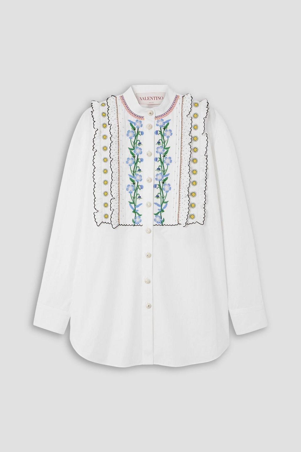 VALENTINO GARAVANI بلوزة من قطن بوبلين بكشاكش وبتصميم مطرّز