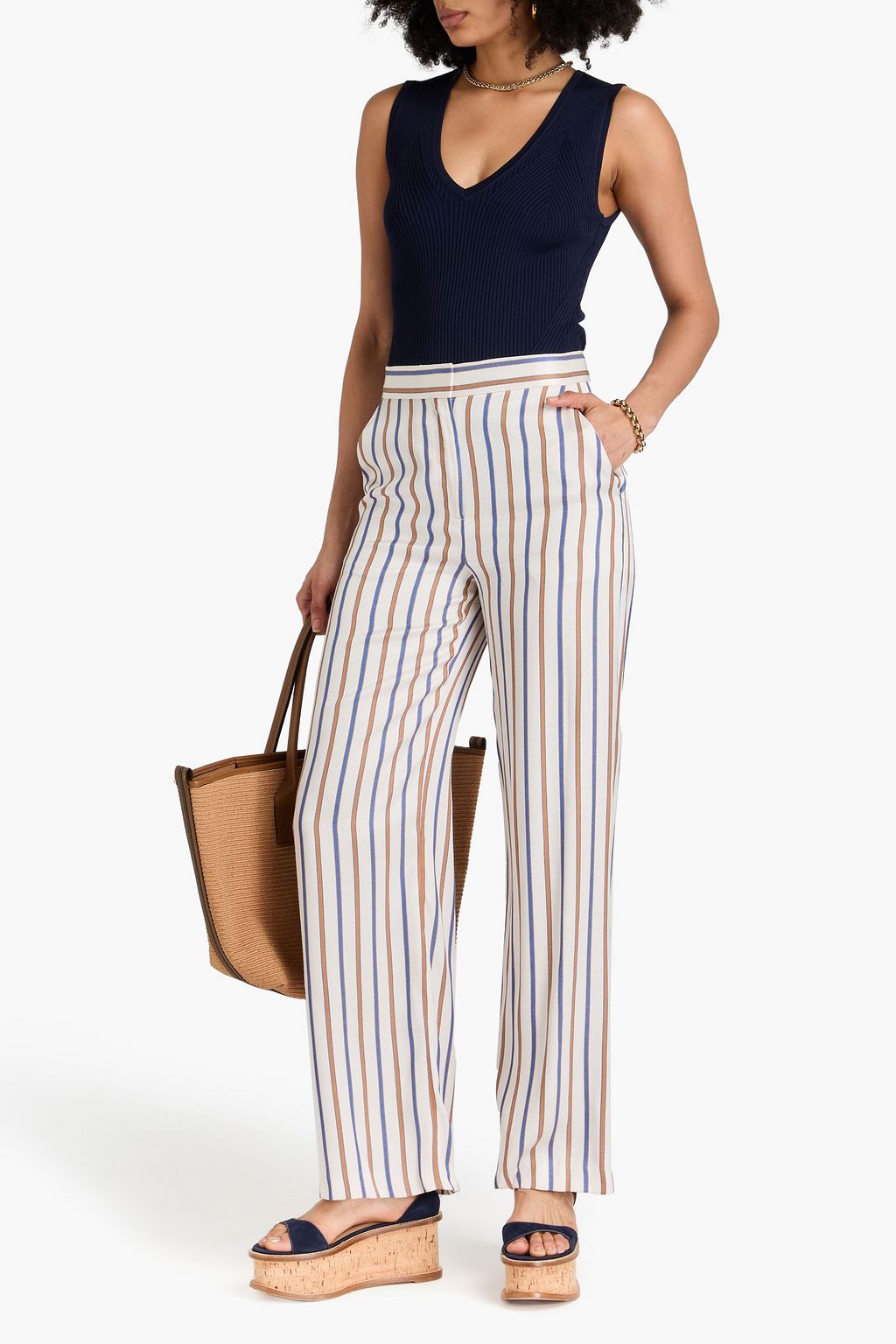 VERONICA BEARD بنطال "جريجور" مخطط بأرجل مستقيمة من التويل