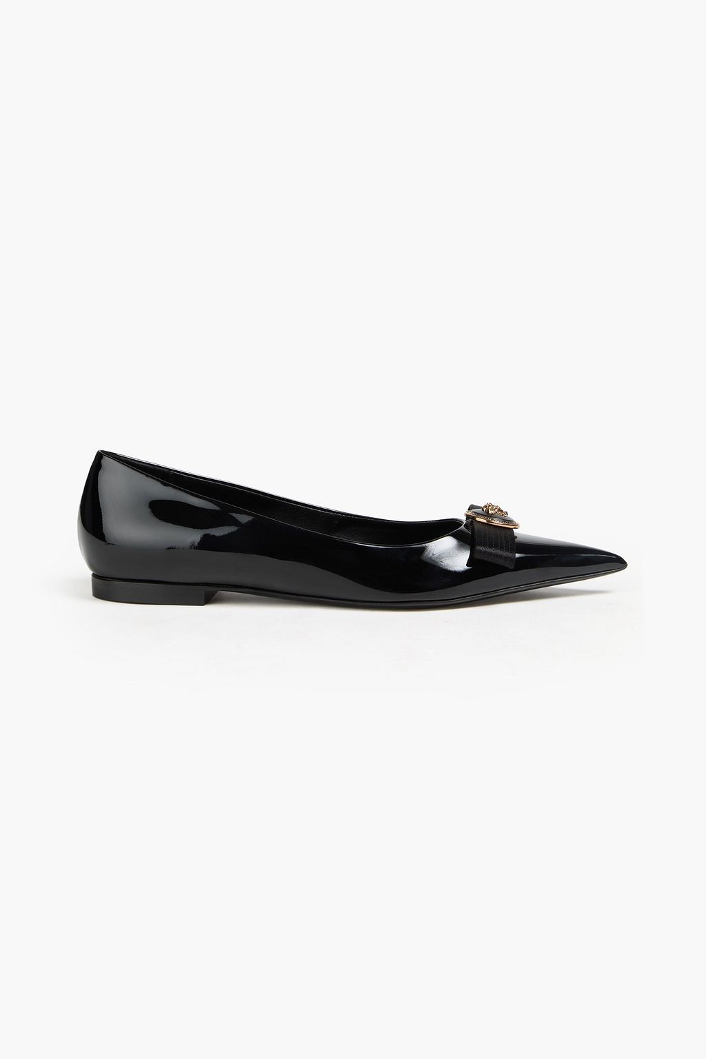 VERSACE حذاء مسطح بمقدمة مدببة من الجلد اللامع بتصميم مزركش