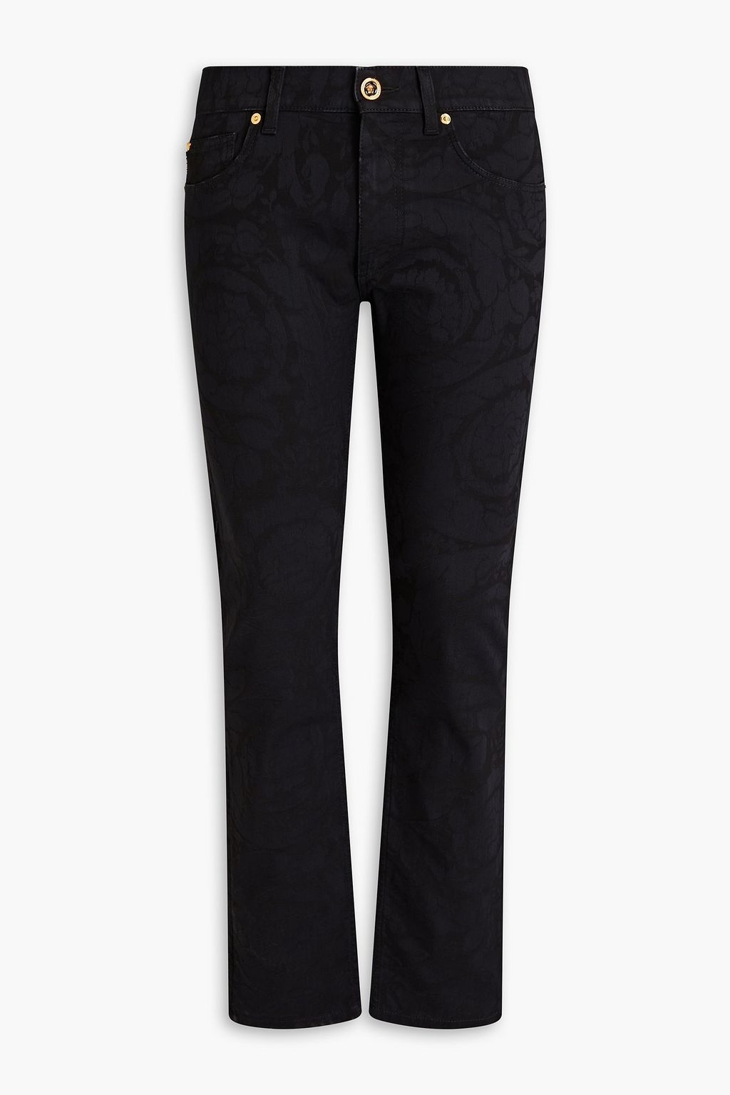 VERSACE بنطال مصنوع من الجاكار بنقشة أزهار ومزين برقعة زخرفية
