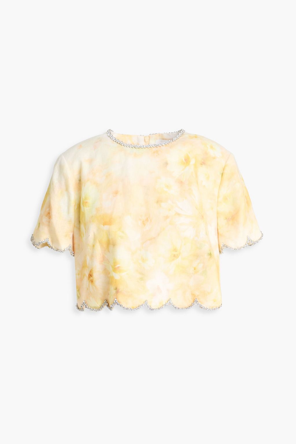 ZIMMERMANN بلوزة قصيرة من الكتّان مزينة بطبعة الأزهار والكريستال
