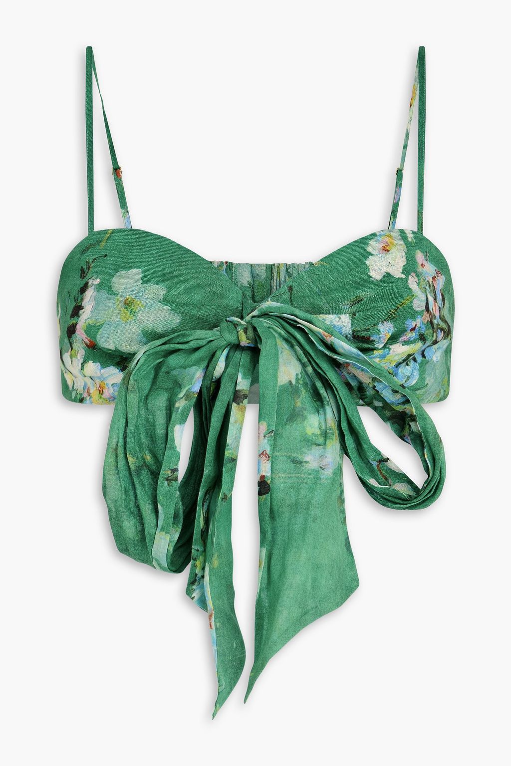 ZIMMERMANN توب بنمط حمّالة صدر من الكتّان مزين بطبعة الأزهار وبربطة على شكل فراشة
