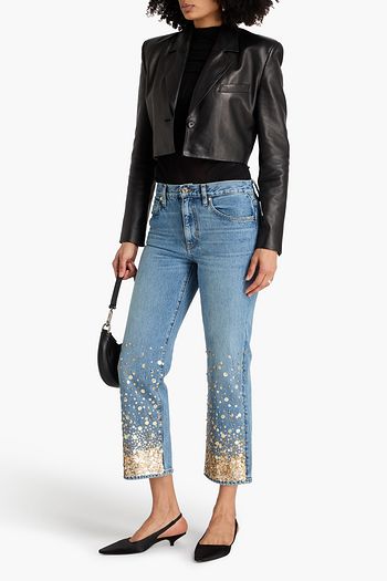 Le High Straight cropped distressed high-rise straight-leg jeans