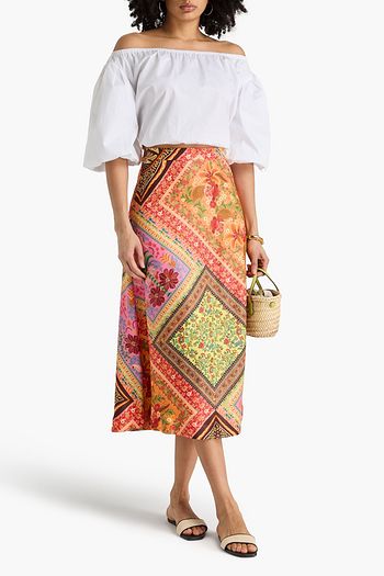 تنورة طويلة من مزيج الكتان بكسرات مزينة بطبعة الأزهار