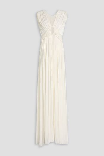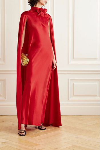 فستان سهرة من الكريب والساتان بتصميم درابيه